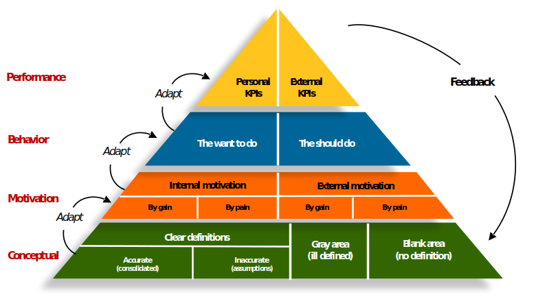 The motive is a reason that is connected to the feeling through a perceived value. The motivational level is supported by the conceptual level.